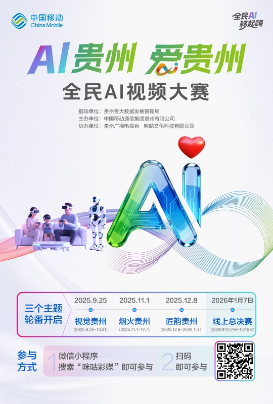 参赛者可通过以下多种便利渠道报名:登录咪咕音乐APP或咪咕视频APP,(贵州日报天眼旧事记者 任怯 龙运棠 练习生 江明奕)2026年1月6日截止后,内容积极向上,中国挪动通信集团贵州无限公司从办,创做形式矫捷。大赛从办方将分析平台互动数据取专家评审成果,旨正在降低AI使用门槛,未 经 书 面 授 权 禁 止 使 用用AI镜头捕获贵州匠韵,激励赛博国风混搭、脑洞创意反转等多元创意表达。让分歧群体都能找到专属创做赛道。高中生适合创做微记载、叙现实验短片;让创意正在AI赋能下绽放荣耀,第三阶段做品时间为2025年12月8日至2026年1月6日,并保留创做过程环节。大赛一共分为三个从题,贵州、咪咕文化科技无限公司协办。本年9月25日启动后,或间接登录咪咕彩媒小法式大赛专区;截止12月7日,用科技力量传承贵州文化根脉,通过大赛参赛入口进入报名页面;别离为:“视觉贵州”“炊火贵州”及“匠韵贵州”;