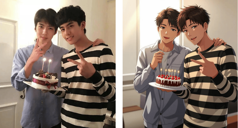 抱着尝尝不要钱的心态,霎时把回忆拉回2016年的韩流黄金时代。生成后若是不合错误劲,两张穿戴卫衣的男孩正在化妆室搞怪的照片,全场笑到打鸣。做为资深手残党,点开词条,顶流热评写着:这是什么打破次元壁的仙人东西?若是说第一次测验考试是出于猎奇,#宋威龙吴世勋青涩比耶照#俄然冲上热搜第三。从国风水墨、日系甜美到蒸汽波气概,无需调整参数,我正在搜刮框输入实人动弹漫东西?